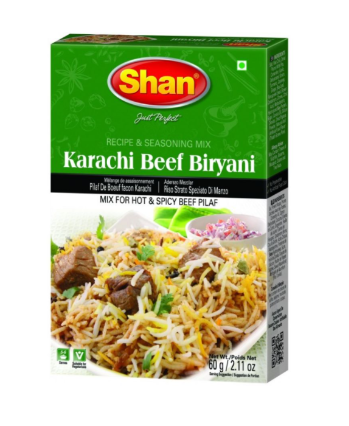 Cuisiner le biryani de bœuf, spécialité de Karachi n’a jamais été aussi facile. Ce plat est à base d’épices, de riz et de viande, de poisson, d’œufs ou de légumes . Shan Beef Biryani Masala a toutes les épices nécessaires pour cuisiner ce somptueux plat de biryani