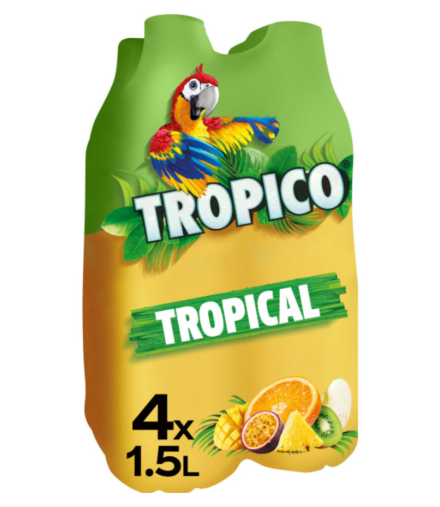 4 bouteilles de Tropico, boisson rafraîchissante aux fruits (tropical) et à l eau de source, aromatisée, sans bulles, avec une teneur en fruits de 12 %